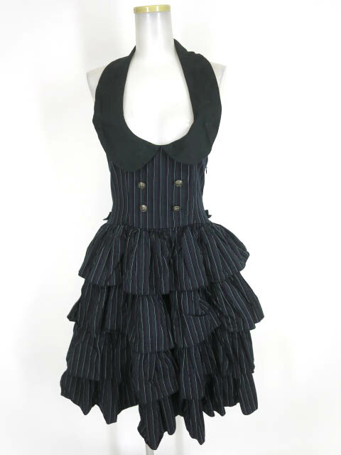 【中古】ATELIER PIERROT / ストライプ柄ホルターネックベストワンピース アトリエピエロ B40821_2111