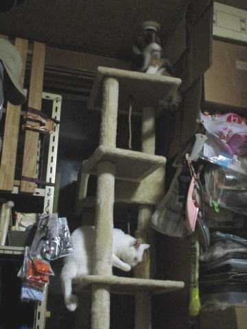 あっちこっちの場所で、毛づくろい中にゃんだ ふみ♀わかりずらいかも~ですが、タワー…