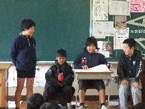 今日は王子のクラスの授業参観社会の授業で各グループに分かれて北海道の生活についての発表でした各グループとも趣向を凝らし劇や物語風に発表してました王子のグループは先生と生徒役に別れて授業風景を劇風に発表していました(王子は先生役)内容は雪の日の履き物たくさんの雪を見たことがない王子「かんじき」と言っても全然ぴんと来ていない様子もうちょっと調べれば良かったのに・・・他のグループも内容より「劇にする」事に重点を置いていたみたい(笑)笑いもありそれなりに楽しい授業参観でしたその後は懇談会滞りなく終わるかと思いきや4月からの役員決めの話が出て・・・このクラスは結構いろんな訳に積極的に参加される方が多くその方達は既にPTA執行部や子供会の役員(地区子供会の役員はほとんどこのクラスの人)に決まっていて残りは普段からあまり参加されない約10人結局はどんよりと終わりました(笑)