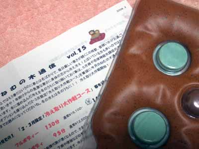 おはようございます。今朝は晴れているものの路面は凍っていてツルツルです。これからお出かけの方は滑って転ばないように気をつけてください毎月月初にメンバー様にお届けしている「ねむの木通信」週末に届いた様子で沢山のメンバー様からお問い合わせのメールを頂きました。「ねむの木通信」はサロンでのお教室やイベントのご案内や健康豆知識等を搭載させて頂いています。そして2ヶ月に1度の割合でメンバー様限定メニューのご案内もしています。この限定メニューは通常はオプションでしかご利用いただけないメニューやいつもは扱っていない季節限定のものを割引価格で組み込みんだとってもお得なコースです。そして更に、その季節に身体に出やすいトラブルの予防や対策を考慮した内容なのでメンバー様にとってはねむの木のイベントごとの一つ様になっているようです。写真の右側にチラリと写る茶色の怪しい物体・・・・これは今月からねむの木のオプションメニューとして登場したもの。貴重な天然の玉石、黄土、トルマリンのパック。体内毒素をガツンと排出してポカポカに~ メンバー様限定コース以外でもオプションとしてご利用いただけますのでご興味のある方はお申し付け下さいませ。ちょっと嬉しい話あるメンバー様からのコメント「最近冷えがひどくて・・・なんて悩んでいてね、夜な夜なPCを開いてtake。さんのブログを見て睡眠不足も冷え症にはよくないのねと思って慌てて寝たのよ~」(http://plaza.rakuten.co.jp/nemunoki2006/diary/200801230001/) お役に立てて光栄です冷え性レベルチェック その6お尻お腹に冷えを感じる事は?a.特にない b.触るとひんやりしているc.いつも冷えていてお風呂に入ってもなかなか温まらない。手足の冷えが進行するとお腹やお尻が冷えてきます。このあたりは女性に重要な器官が密集しています。お腹・お尻の冷えは婦人系トラブルにつながりやすいので要注意です! ※オレンジページムック 「自分でできるやさしい漢方」参照・普段から服装には注意し腹巻やタイツなどで骨盤周りを冷やさないように注意したり足首周りには婦人科にまつわる反射区が密集しているので足首を冷やさない事もお勧めします。 今日も最後まで読んでくださってありがとうございます。皆様の応援が励みになります。毎日、感謝!感謝!です↓↓↓↓