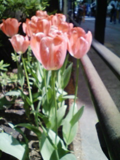 お天気は良いし、街路樹の脇ではチューリップが満開で春と共に休日を堪能