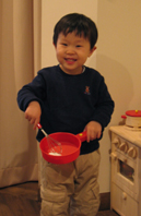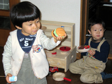 12日&13日 土曜日から私はまーくんと実家に帰っておりました。いやー特に夫と喧嘩したとかではありませんよ。夫が会社の人達期間限定でとバンドを組んでおりまして、その発表会みたいなのが近いということで、練習が土日入ってるんだけど~って言われたので、「どうぞー」ってなことで私は実家に。しかも久しぶりにお泊り。行ったら、もう間もなく出産の姉と姉の子供(まーくん従弟)のあっくんも来ていました。あっくんは玄関まで迎えに来て、まーくんを見て大喜びしてくれましたよ。二人は車が大好き。ミニカーで遊んだり、足けりの乗り物に乗って家中ガタガタを動きまわったりと騒々しく遊んでいましたが・・・実はおままごとも大好き。その後、あっくんはお昼寝しましたが、まーくんはお昼寝なし。来たときは降っていた雨があがったので、私とまーくんは二人でお散歩しました。私「帰ろうか~」まーくん「まだ帰らないよー」と二人で会話をしながら、結構な距離を歩きましたよ。ずいぶん歩けるようになったなーってびっくりしました。そしてその後お昼寝から起きた二人は遊び続け翌朝も遊び続けました。実はゆっくりするつもりで実家に行ったのですが2歳児二人の世話は結構大変。でもいい運動にもなりました。日曜夕方我が家に戻った私、夫に演奏会の結果を聞くと、4組中で1番だったそうで・・・思わず、うそーーーー!夫曰く「俺もうそーって思ったよ」って。とりあえずは「おめでとう」ってことで期間限定バンドの期間が25日まで延びましたわ・・・来週の週末もバンド三昧か?ははは、まーしょうがない。趣味があるのはいいことだし。音楽は私も大好き。25日以降に家族サービスしてもらいましょー。その後、なんか「パンの材料は足りてる?ちゃんと買いなね」といつもより気を使ってくれるコメント。お互いの趣味を認め合う・・・大事なことだわー。14日夫の会社は祝日は関係なく仕事です。なので朝から通常出勤。そして今日はまた実家へ。姉がいよいよ病院に行ったそうでだ、あっくんを母が面倒見る予定だったのですが、この日は母の数ヶ月に一回の通院日。ということで、私があっくんの面倒を見るということで前日に姉と母を約束しておりました。二歳児二人、先日も結構大変だったから(仲良かったと思ったら喧嘩したり)覚悟していたのですが、あっくんはお昼寝時間になっちゃったみたい。眠そうになってふらふらに。本を読んであげたらすぐにスヤスヤ。まーくんは最近お昼寝しませんから、そばに座ってあっくんに毛布を掛けてあげてましたよ。あっくんが寝ている間は、まーくんと二人おやつを食べたり、お店屋さんごっこをしたり。でも、声は小声で・・・ね。たまに「あっくん起きたか見に行ってくるね」と言ってそーっと様子を見に行くわが子がずいぶん成長したなーって思いましたよ。