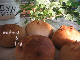 昨日の朝、久しぶりに作った生クリーム入りのパン・・・朝早めに起床。雪積もってるかなーってのぞいたけど全くもって積もってない・・・でもさすがに冷え込んでました。朝に間に合わせるために食パン型ではなく丸パンにして焼きたてをみんなで食べました。今回このパン、イーストをいつもより4分の1くらいに少なくしてオーバーナイトで発酵させてみました。できたできた。イーストって少なくってもちゃんとパンできるんだ。久しぶりの生クリーム入りのパン、やっぱりどっか甘く感じます。そして今日の朝作ったのはこちら私の大好きなベーグルです。以前作る予定だったのに、生地がゆるくて普通のパンになっちゃった時と同じ組み合わせ、胡桃&いちじく です。うーん欲張りすぎました。かなりいちじくを入れてしまったせいで、成形時かなりいちじくが手にくっつきましたが、焼きあがり、外はカリッと中はモッチモチに。見た目いちじくパンクしてますが、かなりおいしい。プッチプッチがたまりません。反省点といえば、オーブンが予想以上に温まらなくて、茹でた後少し時間が経っちゃったことかしら。次回はちゃんとオーブンの余熱時間を見なくっちゃね。