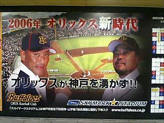 ミスチルファンさんのところで既に紹介されていますが、昨日の夕方にBsの新井コーチがラジオに出演されました。NK分断で破壊力UP!オリックス・新井コーチが構想明かす(サンスポ)ス○タンがNKを並べるような発言をしていたのに対し、新井さんがこの二人の打順を並べずに左打者を挟むとしています。確かにその方が相手の中継ぎ投手を使わせるという点で良い考えですよね。さすが新井さん、仰木野球の継承者はまさにこの人だと思うのですが新井さんを監督にするのがいいと思うのですが、かなり地味なのでマニアには喜ばれそうですが、普通の人は名前すらも知らないでしょうね。オリNK砲初の揃い踏み、巨大看板で(なにわWEB)この二人に大阪ユニ似合いませんね・・・・そういえば吉井とマクドの巨大看板の時代もありましたね。--------(追加)早速この巨大看板を撮影してきました。なんかいかつい二人だけに、ちょっと怖かったです。--------Bs宮本"ライバルは嫁" 開幕1軍へ右肩も万全!!(スポニチ大阪)昨年はサーパスで投げただけでしたからね。この人が完全復活すればKKOの負担が少しは楽になるかと思います。オリックス加藤、宮古島杯連覇だ(なにわWEB)昨年はフル回転でしたから、疲労が残っていたりしないでしょうか?とにかくケガだけには気をつけてもらいたいです。仰木さん勇姿32点、臨時写真展開始(なにわWEB)この写真が24日からの神戸市役所に行くのでしょうね。オリもう決めた!希望枠は立命大・金刃(なにわWEB)どのような投手かは知りませんが、先発できそうな左腕であるのは魅力ですね。うちはとにかく金では勝てないので、誠意を見せることが大事ですよね。BW時代から立命へのパイプはありますからね。このパイプ維持のために、某投手はまだ雇用されているのでしょうか?-------続いてカープのネタ佐々岡、郷里で始動(中国新聞)広島・佐々岡"原点回帰トレ"故郷の浜田で始動(スポニチ大阪)この数年は、先発のつもりで調整したら中継ぎ抑えにされたり、抑えのつもりで調整したら先発にされて結果を残せなかったことが多いように思います。この人は先発投手だと思います。ただ、今年結果を残せなかったら厳しいでしょうね。
