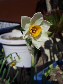 日曜日、厄除け参りの帰り道、道の駅”さくらの里”に立ち寄った。 お野菜も安く、ほとんどが70円のシールが貼られていた。大きな大きな白菜1個70円。これで農家の方々、、、どれくらいの儲け?ってちょっとヤラシイ~計算したり?!でも、手間隙かけて、大きく育てコレだけのお値段。。。 さくらの里には花を売っているコーナーもあり、いい香り漂わせている水仙発見!母が欲しいと思っていて、地元の花屋でも黄色の水仙があったけど、、、我慢しててよかったみたい。 大きな球根3つ位の鉢、1鉢320円なり!! 地元商店街だと1鉢600円はしてたもんね。 早速、植え替えました。 関西地区では淡路島の水仙郷が有名。そんな風に群生はしてないけど、いい香りを漂わせてくれています。