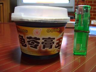 頂き物です、、、亀苓膏↓ 何かわかります?感想文は午後UP **感想** お昼のおやつとして、 亀苓膏食べました!!答えは、カワセミさんが書いてくれていた”亀ゼリーです。。 これは以前、TVかなんかで見たことあり。亀ぜり~!?と思っていたんですが、一昨日、いつもお世話になる方より上海土産としていただきました。 見た目は珈琲ゼリー。ニオイはなし。上澄みをちょっとなめてみると、おぉ~漢方薬ぅ~。でも癖はなく、苦味がちょっと。一口パクリ、、、これといって味はなし。一緒に入っていた袋を切って液体を入れる。。。液体はどうやらハチミツみたい。その甘さがあり、抵抗なく200グラムペロリと 何やら亀ゼリー、”素となっているのは「腹甲(亀板)」すなわち「干した亀の腹の皮」です。なんでも「腹甲」には、身体にたまった余分な熱、毒素を排出するはたらきがあるのだとか。だから食べれば身体の中からすっきり、肌もきれいになる!というわけ。”とあり。 中国などではポピュラーな健康デザートみたいです。 お肌ツルツルになるかなぁ? というわけで、亀ゼリーの感想でした。 その他にお土産としていただいた物はピータン、塩卵(塩卵はゆで卵を殻ごと塩につけたもの。) 。これはチビチビご飯のお供にいただきます!!中国、おもしろそう~~