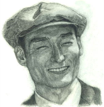 -1949年作品-[監督] 黒澤明[出演] (村上刑事)三船敏郎 (佐藤刑事)志村喬 (遊佐)木村功 ▲似顔絵は佐藤刑事役の志村喬さん----------前作『酔いどれ天使』でチンピラ役だった三船敏郎さんが、この作品では真っ直ぐな若い刑事を演じています。作品としては、新米刑事の村上(三船敏郎)が拳銃を盗まれ、ベテランの佐藤(志村喬)に指導されながら犯人を追い詰めていく、といった内容です。 【コルトがなければブローニングでやるさ】この映画でのおもしろかった箇所の一つが、その新米村上とベテラン佐藤との対比。村上は自分のミスから起きた事件だけに、必死に捜査に取り組んでいく。けれどまだまだ若く、捜査に自分の感情を持ち込んでしまい、被害者に同情をし、ときには犯人にまで同情をしてしまう。ベテランの佐藤刑事はというと、見た目はイイおっちゃん。拳銃の運び屋の女性を取り調べるときも、アイスを食べさせながら、穏やかに話を聞き出していく。そんな佐藤刑事だが、盗まれたコルト拳銃が強盗事件に使われ自分を責める村上に対して、「コルトがなければブローニングでやるさ」とサラリと言ってのける。捜査には感情を持ち込まない、ベテランらしいドライな感覚がとてもよく出ていたとおもいます。(このあと佐藤刑事の家でのイイお父さんぶりが描かれていたので、その落差がよけいに印象に残りました) この映画は戦後の東京の描写の事もよくとりあげられます。映画の冒頭、村上がスリの男を追って走り回るシーンがあるのですが、本当にこれが東京!?とビックリしてしまいました。とにかく高い建物が全然ないので、やけに空の広さを感じました。しかも後で夜空の星を眺めるなんていうシーンなんかも出てくるのです。今とは全然違う東京の姿も楽しめました。 +++++++++野良犬