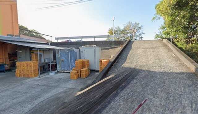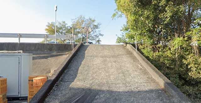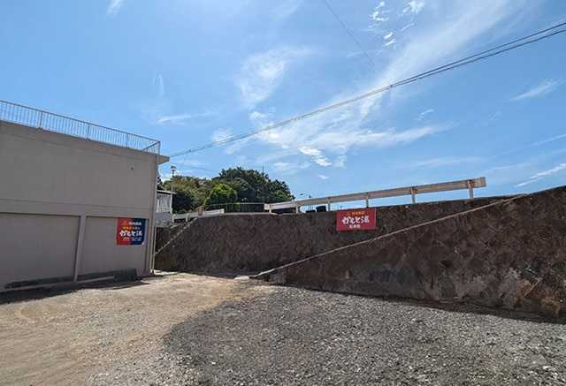 坂の上り口ではフロントバンパー、その後はリア(マフラー)が当たらないように・・・