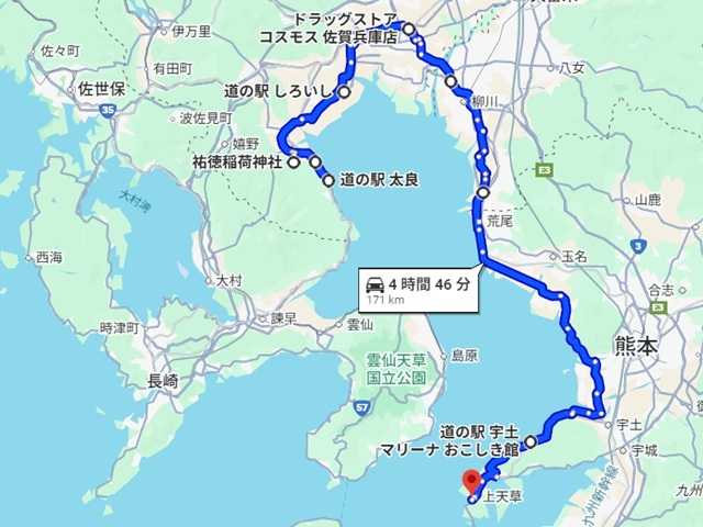 本日のルート『道の駅 太良』(佐賀県)~『道の駅 上天草サンパール』