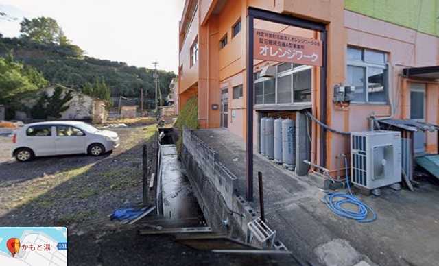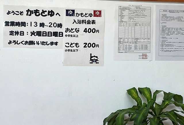 当施設へお越しの際、道が分かりづらい場合は「かもと湯」の看板を目印にしてください。