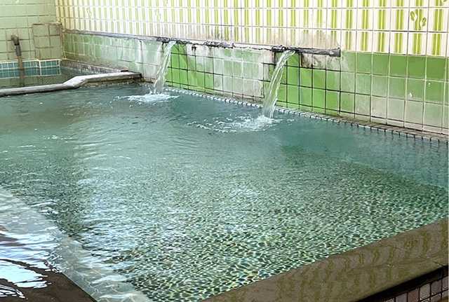 掛け流しのお湯で浴槽が満たされており、お湯はさらさらな手触り。