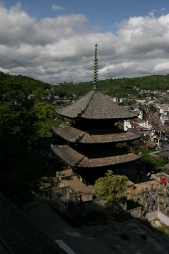 引き続き尾道の写真です。三重塔の後にロープウェイが見えるかな?(^_^;)坂の町尾道。廃屋が多いのが気になった。古い家マニアの私ですら見るのが辛くなるような荒れ果てた家も。道が狭いので、取り壊すのも、建て替えるのも大変そう。これはカメラの構え方が歪んでいるのではなく、階段が傾いているのだ!毛糸屋さんの看板は毛糸でできている!尾道の犬は自分でフンの始末もするらしい?(笑)