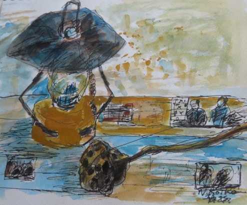 静物 ランプが置かれている静物です。 左に寄りすぎてしまって、全体のバランスが、…