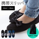 携帯スリッパ 折りたたみスリッパ (23cm ~ 24cm) レディース 収納ポーチ付き ルームシューズ 滑り止め リボン付き フォーマル コンパクト収納 室内履き 上履き 参観日 授業参観 学校行事 面接 幼稚園 旅行用 おしゃれ 送料無料