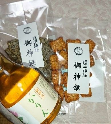 お札にお守り、カリン飴におかき、そしてカリン酒