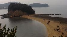 恋人同士で手をつないで島のところまで行って帰ってくると、