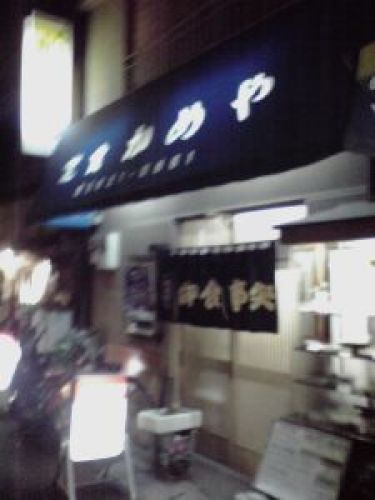 最近どうしたものか混沌とした呑み屋街よりも静寂に包まれて呑むのが心地よく感じられるのでした。少し疲れてるのかもしれません。そういったわけで静寂さが町を包む根津にやって来ました。根津の町は夜になると閑静というより寂寂たる空気に浸されていて,それが孤独さに拍車を掛けてくれるのでした。 根津といってもどこもかしこも静かなわけではないので,注意深く店を選ぶ必要があります。駅の裏手の通りにある呑み屋街を徘徊し,目指す酒場を物色します。いくつかの候補となる店を見つけたもののこれぞという決定的なお店はありません。とはいえいつまでも町をぶらぶらしているほどには時間的余裕があるわけでもないので,とりあえず目に付いた「定食 かめや」に入ってみることにしました。まあどうってこともないごくありふれた大衆食堂です。4人掛けのテーブル席のほか,向かい合わせに長椅子の置かれた細長いテーブル席もあります。こちら創業が昭和34年とけっこうな老舗店なのだそうです。お客さんもおらず独りっきりなのは望みどおりですが,店のちょっときつそうな女将さんに背後に立たれているとちょっと気詰まりになります。呑みの肴も一通り揃っていて便利です。値段が安い分,量はちょっぴりでいささか物足りない気もしますが逆に言えば独り呑みサイズの盛りでちょうど使い勝手がいいかもしれません。品書:ビール中:420,割水芋焼酎:400,ハムエッグ/たらこ:300,シュウマイ:280 そこへO氏から連絡あり。孤独を楽しむよう装っていましたが,実は2人で呑みに行く予定があったのでした。向かったのは不忍通り沿いにある「酒の店 灘屋」です。マンション風の建物1階にあるお店で,看板には季節料理とありちょっと敷居の高さを感じさせますが,ガラスの引き戸が大衆酒場らしい感じもあって以前から気になっていたのでした。店内はカウンターにテーブル席,小上りとごくごく標準的な造りです。スツールの座面がわずかに反っているのがお尻にフィットしそうで,腰掛けてみたくなります。さて,それなりに広い客席ですが,独りの客もおらず,根津の辺りの夜はなかなか商売が厳しいようです。雑音がまるでないため,必然的にわれわれも心なしか声を潜めて会話することになります。この店いつ頃からやってるんだろうなとコソリと交わした言葉もしっかり女将さんに伝わっていました。で,けっこうな歴史のある居酒屋さんらしいのですが,高齢の女将さんの口からは戦後からよの一言が告げられただけだったのでした。