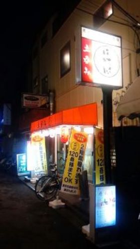 いつものことながら財布の中身はスカンピンなので、一軒目となると定番の立ち呑み屋に足を運んでしまうのは止む得ないのですが、そうしてお得に呑んだ気でいると、財布の中身が増えたわけでは全くないにもかかわらず、なんだか気が大きくなって危なげな店にも躊躇なく入ってしまうのは、格安酒場の功罪のひとつと言えましょう。 格安の一軒目は、ますます頑張って勢力を拡大してくれるのを切に願わずにはおられないー普通ならそんなことは間違っても考えないのですがここは特別ー「晩杯屋 大山店」であります。武蔵小杉で産声を上げ、ここが3店舗目だと思いますが、この店の躍進は間違いないものです。ここ大山店も以前このブログで何やら語っていたと思いますが、今回はこのチェーンの存在を知らぬA氏が同伴しているので、彼の意見をご紹介しますかと言ってももとより寡黙な彼のことなので、それほど感想らしきものが聞けることは期待しないでいただきたい。さて、品書きを眺め倒した彼は呑み物は余り安くないねと言いながらも肴の豊富さと、とりわけ魚介の充実には我知らず笑みが溢れてしまっています。マグロぶつやアンキモが150円であるにも関わらず結構旨くて、しかも利用もたっぷりなのだから、思わず「すごいね」の一言も漏れ出てしまうってものです。酒も安くはないと言いながらも、今、まさに目の前に置かれる「でかんしょ」のちっこいジョッキとは比較にならぬ立派さを思うと文句のつけよう筈がありません。あまりA氏に登場いただくこともなく河岸を変えることにしました。 向かったのは、踏切越えてハッピーロードのアーケードを潜ってすぐの店舗の隙間を抜けて入る怪しげな呑み屋街でありました。すでに何度も来ていて、ここでもあれこれ語っていますが、まだ何軒もの未訪店があります。そんな怪しい路地ー内部がぷっくり膨れているのであたかも胎内に帰ったのような安心感がありますーに足を踏み入れても、A氏からこれといった反応は発せられません。心無しか店の灯が数を少なくしていて、寂しく感じられます。まだ知らぬ店が2店舗ほどあって、その向かい合わせの店舗を指して好きな方に入ってみようか、どっちがいいと水を向けると、ぼくでも一人ならしばし躊躇しそうな側を選んだのはちょっと意外でした。「よりみち」というお店で、外見にはどのような店かまるで検討もつかず、本能的にこれはスナックに違いないと確信したものの珍しく自己主張するA氏の意見を即座に受け入れ、お邪魔することにしたのでした。案の定店はスナックというしかない佇まいであって、ママさんも高齢ながらスナックのママさんそのものといった雰囲気を漂わせています。6人が定員すれすれという極小店舗は、それでも狭いながらに結構贅沢かつ派手めに内装されているのでした。ウーロンハイを頼むと緑茶しかないのよね。お通しとしてはなにやら風変わりな野菜炒めにまあこれで充分と思っているとさらに追加で立派な切り身のイワシ刺し身が出された時には真っ当な価格での呑みは諦めようと観念したものです。奥の3席は地元の老人クラブで塞がり、闊達なお喋りにこんな歳になっても上下関係が存在するのだなと、うんざりとしながらも興味深く様子をうかがいました。ママさんから激辛という煎餅を貰いました。確かに辛いものの十分に美味しく賞味できるので平然としてうまいうまいと頂きますが、この反応が彼らには物足りなかったようです。何彼と声を掛けてきたのがピタリと止んでしまいました。ところで勘定のことですが、拍子抜けするようなお手頃価格。年金生活であろう常連からはあまり取れないでしょうから、われわれからという邪推は快く裏切られました。