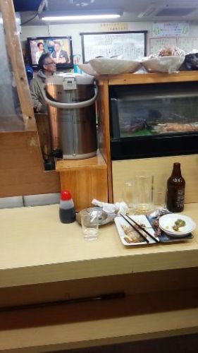 中野の町とはしばらく決別していました。決別なんて大層な言い回しを用いるのは照れ臭いのですがもう当分は訪れることもないとひところ思ったものです。どうしてそんな心境になってしまったか、それを振り返ってみるとどうしてそんな瑣末な事柄に頓着していたのか我が事ながら無駄な意地を張っていたものだと、中野の大好きな酒場の何軒かにも久しく足を向けなかったことが悔やまれるのでした。先般自宅から行き先を決めもせず闇雲に歩いていたらいつの間にか中野に辿り着いていて、なんの抵抗もなく町に溶け込めたように感じられたのは運の良いことでした。ところがその際入った酒場は好ましくないというよりハッキリと不快だったのは、中野の懐の深さも知らぬのに見限った態度を取った己への罰のような気がしたものです。どうでもいい個人的なことをいつまでも書いていても詮無きこと。とにかくまたしても中野にやって来ました。今回はきっといい酒場と出会えるはずとの根拠のない予感があります。 早速お邪魔することに決めたのは、「酒道場」でした。以前からその存在は知っていて、いかにもぼく好みの枯れた雰囲気のあるお店でしたが、今となっては立ち寄らなかったその理由を思い出すことは困難ですが、閉店してしまう前に入れたことをひとまず喜ぶことにします。第一印象そのままのカウンターのみ高齢のお母さん一人でやっているお店でした。ゆで卵で腹ごしらえされているところだったようです。お通しはたっぷりの大根煮、鯖のアラが出汁に深みを出しています。でも女将さんの食べかけのゆで卵が無性に美味しそうで、つい頂所望してしまいました。醤油を垂らすのが私は好きとおっしゃるので試してみたらこれはなかなか酒に合う。創業45年で、お母さんも70歳になられたそうです。都内で生まれ群馬に疎開、沼田の奥の当時は何時間もかけて歩かねばならぬような土地で育ったそうです。カウンターだけの居酒屋はつねに客の目を見ながら調理をしないといけない、常に五感を尖らせているという訳ねとなかなかに含蓄のあることを仰る。日本酒は両関だけ、一度も浮気していない、焼酎はあれこれあるけどね。店内に飾られる天狗の神様は真っ黒に染まっていて、こっそり飾られたなまはげもまた歴史を物語るかのように黒ずんでいます。力さん(「第二力酒蔵」)を始め、「らんまん」、「路傍」、「赤ちょうちん」なとの老舗酒場について語ってくれて、とりわけ長い歴史を持つ「ブリック」にはリスペクトを隠すことはありませんでした。常連はみな鬼籍に入られたけれど、近頃は若い人がよくみえて、ついこの間は中野探検隊とかいうグループが古い酒場を求めて訪ねてこられたそうです。お勘定は正直かなり乱暴ですが、お母さんとの語らうためにもいずれまちお邪魔したいものです。 次なる酒場は一転して今風でありつつも、きっぱりとした立ち呑み店の魅力を湛えた「立ち呑み酒場 魚屋よ蔵」です。店を入るとすぐに冷蔵庫があって自己申告で刺し身なんかをいただくスタイルで、都内では近頃になってチェーンの食堂でよく見かけるようになりましたが、幼少期を関西で過ごしたぼくにとっては一膳飯屋を思い出させてくれます。肴は全品280円、川の字のカウンターとシンプルなのが好ましい。奥にいる客は落ち着きなく行ったり来たり、入り口そばには常連用のボトルキープのための棚があります。立ち呑みでキープできるのは珍しい。キープしてでも通いたなるだけの魅力があるということなのでしょう。でもそんなにウロウロするなら入口付近に陣取ればいいのに。そんなことも思わぬではないですが、確かに良い店です。中野はまだまだ探訪せねばならぬようです。