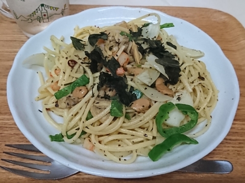 近頃、酒や食べ物に関するエッセイなどを読み返してみたりしています。かつては同じエッセイでも分析的というか理論的な文章を好んで読んで読んだものですが、今ではそういった才気ばしったものより、麩での走るがままにあてどなく綴ったような気楽な文章を好んで読むようになっています。人生の髄まで知り尽くしたかのような老齢期に差し掛かったような人の書いた文章は、脳が活性化されるような刺激はないけれど、しみじみと文章に読み耽ってしまうような誘引力が強く感じられるようです。ってな感じで適当な前振りをしてみせて、実は言いたいのは書き出しに困った際には作家たちの文章を引用して茶を濁すことがあるってことを断っておきたいと思っているのです。 特に好んで読み返しているのが吉田健一氏の著作です。文藝春秋『ノーサイド』編集による『美食家列伝』には、四十二歳の年に胃の手術をしてからは小食になり、料理はほとんど見て楽しむだけでひたすら酒を飲んでいたという吉田健一だが、人をもてなすことに蕩尽した後半生であったとも言えようか。とあり、数々のエッセイでの健啖家ぶりが四十二歳以前のことであったのだろうかと驚かされもするのですが、それはともかくとして「飲む場所」と題された文章に以下のような記述がありますが、これを一読するだけで今晩はおでんの卵を食べずにはおられなくなるのです。 この道頓堀のおでん屋で出すおでんでは最近では茄で卵が好きになった。ただの茄で卵が銅壺の中で煮えているだけで、この店にはもっと知られた売りものがあるということであり、そう言えばそれを旨いと思って食べたこともあるような気がするが、ただ茄でただけの卵の白身を通しておでんの汁が染み込んでいる味はいつ食べても間違いがない。 話は変わりますが、敢えて不遜なことを申し上げると、ぼくの文章というのは多分に吉田氏の影響を受けているとこの頃氏の著作を読みながらひしひしと感じるのです。若い頃から好んで読んではいるけれど、集中してまとめて読んだという訳ではないのに、どうしたものかぼくの文章の基調をなしているように感じられるのです。といったことを述べつつ、今回のお題は全国各地のパスタ店の名物パスタを写真を見ることもなくレシピのみで再現した果敢かつ無謀な試みの顛末とご理解ください。 八重洲地下街(というか大丸の地下?)にあったというパスタ店「チャオ」のシーフードパスタ風を作ってみました。どうやら「チャオ」は東京駅からもそう遠くない京橋店はまだ営業を続けているようです。【材料】エビ・茹でタコ・アサリ 適宜/にんにく 1片/玉ねぎ 適宜/ピーマン 1個/マッシュルーム 適宜/ハーブソルト・塩・コンソメ・ドライバジル・赤唐辛子(輪切り)・オリーブ油・大葉(千切り) 適宜【作り方】1. フライパンにオリーブ油を熱してにんにく、赤唐辛子、エビを炒める。エビを取り出す。アサリ、玉ねぎ、ピーマン、マッシュルームを加える。塩、ハーブソルト、コンソメを加える。スパゲッティを加える。タコを加える。エビを戻す。皿に盛って大葉を散らす。 これレシピの出所は不明ですが、まあ材料を改めて眺めてもいかにも日本式のスパゲッティスタンドのレシピって感じで、もしかするとこのレシピがなくとも写真を見ていたらそっくりな仕上がりになっていたかもしれません。ってこれをこき下ろしているわけじゃなくて、こういうのって日本人が好む味なんだろうなって味でした。ってこのレシピをネットに上げた人とそれを作った自分をもって日本人を代表してしまうような振る舞いは禁ずべき行為でした。 続いては、「イルキャンティ」の真夜中のパスタです。【材料】パスタ(1.4mm/茹でる) 100g/玉ねぎ(薄切り) 1/4個/ベーコン(細切り) 40g/にんにく 2片/マッシュルーム(薄切り) 2個/エビ(塩水で戻す) 6尾/トマト水煮 1/2缶/オリーブ油 大さじ1+1/パセリ 適宜/【スープ】水 240ml/コンソメ 小さじ2/パプリカパウダー 小さじ1/一味唐辛子 小さじ1/2/ドライバジル 小さじ1/2/塩 適宜/胡椒 小さじ1/2【作り方】1. フライパンにオリーブ油を熱してベーコンを炒める。玉ねぎを加える。トマト水煮を加えて煮る。マッシュルームを加える。【スープ】の材料を加える。エビを加える。パスタを加える。にんにくを加える。皿に盛ってオリーブ油、パセリを散らす。 これまたいかにもなレシピですね。イタリア人が見たら呆れたりするのかな。でも日本人ってこういうちゃんぽんとか五目焼きそば風の多様な具材を一緒くたに食べるのが好きですよね。ぼくも無論好きです。 福岡にあるという「らるきい」なるお店のぺぺたま風を作ってみました。昭和の頃、カルボナーラというものを知らぬ人が現地で食べたという人の話を伝聞のみで再現したらこうなりましたって感じのレシピです。【材料】スパゲッティ(茹でる) 120g/にんにく 2片/赤唐辛子 1/2本/オリーブ油 大さじ2/顆粒だし 小さじ1/水 100ml/卵 2個/塩・イ