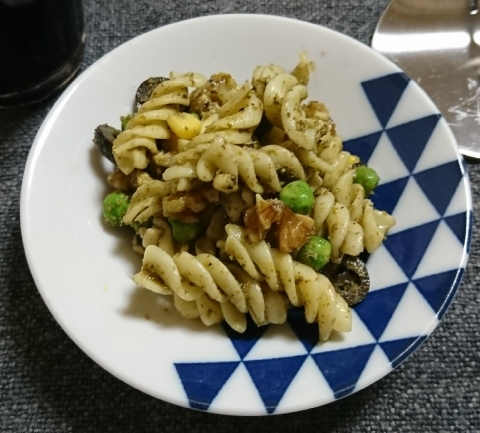 以前も引用したことのある村井弦斎著『食道楽』には、洋の東西問わずありとあらゆる地域の料理や食材が登場します。そんな食材のひとつにマカロニがあります。同じメリケン粉でも伊太利や仏蘭西の南部の方から出るのは気候風土が日本に似ている故か大層粘着力が多くって饂飩には極く上等です。西洋の孔明き饂飩と俗に申しますマカロニは伊太利製を上等としてありますがつまりその国の小麦粉が饂飩に適しているからでしょう。市中の食品屋へは多く米国製のマカロニが来ています。伊太利製や仏蘭西製の上等は滅多にありません。その味の悪い事と申したらポツポツして粘着気がありません。マカロニとは西洋の干饂飩ともいうべきものにて中に孔あり。伊太利人は我邦の蕎麦の如くに好んで食す。西洋料理には種々に使うものなり。マカロニと赤茄子とを共に料理すれば味よし。西洋には赤茄子をマカロニの附物という。マカロニは伊太利を良しとす。 と相変わらずの蘊蓄と饒舌さで伊太利製孔明き饂飩について語るのでした。この小説ともエッセイとも呼べない不可解な文章にはマカロニを用いた料理レシピが数品書き留められていて、そちらもまた興味深いのですが、それはまたいづれ書くことにします。どうしても気になる、今すぐ見たいという奇特な方がおられたら、お決まりどおり青空文庫をご覧いただくとよろしいかと。ということで今回はマカロニを用いた料理数品です。ペストジェノヴェーゼ風サラダ【材料】ペンネ(茹でる) 100g/コーン缶 1/2缶/グリーンピース(冷凍) 1/2カップ/黒オリーブ(4等分) 15粒/くるみ(砕く) 10個/ジェノベーゼペースト・塩・胡椒 適宜【作り方】1. ボウルに全ての材料を入れて混ぜる。 どこぞやのレシピで見掛けたものです。サペンネじゃなくてフジッリを使ってます。ラダとあるけれどあんまり野菜っぽくないです。単なるジェノベーゼペーストで和えたペンネとそう変わりません。けれど、くるみがいい仕事してます。コーンとグリーンピースはなくてもいい位。オリーブもなくてもいいかもしれませんがそれだとちょっと寂しいかも。トマトスープのグラタン【材料】マカロニ(茹でる)・トマトスープ・合びき肉・溶けるチーズ 適宜【作り方】1. 鍋で合いびき肉を炒めてトマトスープを注ぐ。マカロニを加える。耐熱皿に移して溶けるチーズをのせてオーブンで180℃10分焼く。【参考】トマトスープ【材料】オリーブ油 大さじ1/ニンジン(薄切り)・セロリ(薄切り) 1本/玉ねぎ(薄切り) 1個/にんにく 1片/固形コンソメ 1個/トマト水煮 1缶/トマト(一口大) 4個/水 900ml/塩・胡椒 適宜【作り方】1. 鍋にオリーブ油を熱してニンジン、セロリ、玉ねぎ、にんにくを弱火で炒める。固形コンソメ、トマト水煮、トマトを加える。水、塩、胡椒を加えて弱火で10分煮る。ブレンダーにかける。 じゃっきり覚えてませんけどトマトスープが余っていたので無理矢理作っただけ。でもまあパスタとチーズとトマトの組合せなら大概どうしたって美味しくなりますねえ。しらすとキャベツのマカロニ【材料】マカロニ(茹でる)・しらす・キャベツ(2cm角/茹でる)・めんつゆ・ポン酢・マヨネーズ・わさび 適宜【作り方】1. 器にマカロニを盛ってキャベツ、しらすをのせ、めんつゆ、ポン酢をかける。マヨネーズをかけてわさびを添える。 これまた横着な料理です。こんなの食べたっけなあ。マカロニとマヨネーズが合わないはずがないし、キャベツとしらすも凡庸な組合せですね。旨くて簡単に作れるから文句はないけど、いかにも手抜きっぽいなあ。卵マカロニサラダ【材料】マカロニ(茹でる/油を和える) 40g/油 小さじ1/卵(茹でる/白身:粗みじん切り,黄身:潰す) 4個/マヨネーズ 大さじ4/牛乳 大さじ2/砂糖 小さじ1/塩・胡椒 適宜1, ボウルに黄身、マヨネーズ、牛乳、砂糖、塩、胡椒を入れて混ぜる。マカロニ、白身を加える。 茹で卵の黄身をドレッシング、白身を具材にするっていうアイデアは酔いです。ただ食味や食感に変化がないからもうちょっと食材を追加したいところだな。