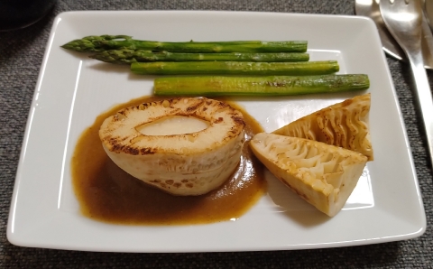 アスパラガスといえばマルセル・プルーストの『失われた時を求めて』の第1篇「スワン家のほうへ」を思い出します。この長大な物語の発端が、紅茶に混ざった一片のマドレーヌであることはよく知られるところですが、アスパラガスについて綴られた以下の文章が非常に強く印象に残っているのでした。--私は立ちどまって、調理台の上に、下働の女中がむいたばかりのグリーン・ピースが、何かのゲーム用のみどりの玉のように、数をそろえてならべられているのを見た、しかし私がうっとりしたのはアスパラガスのまえに立ったときで、それらは、ウルトラマリンとピンクに染められ、穂先はモーヴと空色とにこまかく点描され、根元のところにきて──苗床の土の色にまだよごれてはいるが──地上のものならぬ虹色の光彩によるうすれたぼかしになっていた。そうした天上の色彩のニュアンスは、たわむれに野菜に変身していた美しい女人たちの姿をあらわにしているように私には思われたが、そんな美女たちは、そのおいしそうな、ひきしまった肉体の変装を通して、生まれたばかりのあかつきの色や、さっと刷きつけられた虹の色や、消えてゆく青い暮色のなかに、貴重な本質をのぞかせているのであって、そのような本質は、私がアスパラガスをたべた夕食のあとにつづく夜にはいっても、まだ私のなかに認められ、そこに出てくる変身の美女たちは、シェイクスピアの夢幻劇のように詩的であると同時に野卑なファルスを演じながら、私のしびんを香水びんに変えてしまうのであった。-- よくもまあたかだかアスパラガスのことをこれだけ饒舌に言葉を尽くせるものだと感心したものです。その一方でアスパラガスがウルトラマリンとかピンクってのはどういうことなんだろう、消えてゆく青い暮色の一体どこに貴重な本質が潜んでいるのか実のところ全く理解できていないのでありました。どうにも理解できないままにそれでも持ち前の辛抱強さを遺憾なく発揮して数か月がかりで分からぬなりに読み通したのであります。かつては若さゆえに理解が及ばないのだろうと思っていたのですが、今改めて読み返してみてもその文章の甘美さには読書の快楽なるものを汲み取れてもその意味は相変わらず不鮮明なままなのです。焼きアスパラガスのくるみソース掛け【材料】アスパラガス(茹でる)・くるみペースト・オリーブ油 適宜【作り方】1. フライパンにオリーブ油を熱してアスパラガスを焼く。皿に盛ってくるみペーストをかける。【参考】くるみペースト【材料】くるみ(炒る/砕く)・にんにく・パルミジャーノ・オリーブ油・塩 適宜【作り方】1. 全ての材料をミキサーにかける。 アスパラガス料理って案外ヴァリエーションが少ないのですね。下手な調理をしない方が美味しいってことなのかもしれません。グルメの方にどう評されるか不安ではありますがこのくるみペーストと合わせる食べ方、大正解でした。定番入りです。グリーンアスパラのヴェネト風【材料】アスパラガス(皮を剥く/束にしてタコ糸で縛る/塩茹で) 500g/卵(茹でる) 4個/オリーブ油 大さじ3/白ワインビネガー 大さじ1/塩・レモン汁・胡椒・パセリ 適宜【作り方】1. ボウルに卵、オリーブ油、ワインビネガー、塩、レモン汁を入れて混ぜる。皿に盛ってアスパラにかける。胡椒、パセリを散らす。 アスパラガスと卵(目玉焼きが主流)の組合せは大定番ですが、これはマッシュした茹で卵のソースをのせるヴァージョン。これほとんどタルタルソースみたいなものですが、それよりずっとドライで大人な味。これまでで最も好きな食べ方かも。アスパラペーストのヴィシソワーズ【材料】ヴィシソワーズ 適宜/【アスパラペースト】グリーンアスパラガス(塩茹で/オリーブ油を加えてミキサーにかける/濾す)・オリーブ油 適宜【作り方】1. 器にヴィシソワーズを盛って【アスパラペースト】をのせる。 悪くないんだけどなあ。でもせっかくのアスパラガスをわざわざペースト化するのももったいない気がするなあ。手間を掛けてここまでするよりは茹でてマヨネーズとかアスパラベーコンで十分なんじゃないかなんて思ったりもするのでした。