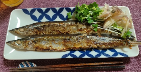 先日、仕事帰りにスーパーマーケットを覗くと塩さんまが5尾298円(税抜)という特価(?)にて売られていました。そういえば先日、テレビでさんまが久々の豊漁であるとのニュースが放映されていたなあ(今朝のニュースで北海道の根室での初揚げについて、地元の漁師がその量、質ともに奇跡であるといった感想を述べていました)。それが一次的なぬか喜びとならぬことを祈念したいところであるが、まだ当分は都民の口に届くことはなさそうです。また、1尾60円は痩せた冷凍の塩さんまであるとしてもやはり破格の安値といえるのではなかろうか。実はこの時点で若干の懸念はあったのだ。さんまに敢えて塩を冠するということは、やはり保存性を高めるためであろうか、塩で漬込んでいると考えてよいのではないか。そうした考えが脳裏を過ったことは間違いなさそうであるけれど、久しく口にしていなかったさんまを目の前にしてたった今しがた思念した先の懸念は瞬く間に消し飛んでいたのであります。そんなにして入手した塩さんまでありますが、買い求めたのは一般の過程での夕食時などとっくに過ぎ去った時間帯だったので、翌日に持ち越しです。翌早朝にやはりさんまには大根おろしが必要と近所のまいばすけっとに走ったのですが、そこで売られる大根の品質の悪さと反比例するような高値に怯んでしまいすごすごと帰途に就くのでした。いざ夕食時になると状態が悪くても買っておくべきだったと後悔するのですが、取り敢えずはカイワレ大根と茗荷を薬味にして食べる事にしたのです。魚焼きグリルを使いたかったのですが、しばらく残る臭いと掃除の手間に怖気をなしてここでもまた妥協してしまい、フライパンにて焼くことにします。まあ、それなりに上手に焼けたから良しとしよう。家庭ではあまり口にしないビールの用意もある。ひと通りの準備を終えて溜まらずさんまに箸を伸ばし贅沢に身をほぐして口に運んだのだ。なんという塩辛さなのだ。いやまあ魚としての旨味は案外悪くないのだけれど、とにかくしょっぱさが先に立ってしまい、1尾は何とか食べ切ったものの残りを口にするのは憚られたのだ。当然処分することなどあり得ない訳で、適当にアレンジして食べる事にしたのでした。塩さんまの混ぜ寿司【材料】酢飯(さんまを混ぜる) 1膳分/さんま(塩/焼く/ほぐす) 1/2尾/茗荷(千切り) 1個/大葉(千切り) 5枚/カイワレ大根(2等分) 1/4パック/のり(刻み)・わさび 適宜【作り方】1. 丼に酢飯を盛って茗荷、大葉、カイワレ大根、のり、わさびをのせる。 翌日の朝食には、まずこの一品。寿司酢は塩分をごくごく控え目にしました。これが抜群に旨かったのです。別にさんまでなくても美味しいのだろうけれど、ごく平凡なこの食べ方が大いに気に入りました。朝から呑むことは近頃めったにないことですが、これは呑んじゃいます。塩さんまの冷や汁【材料】さんま(塩/焼く/ほぐす) 1/2尾/きゅうり(小口切り) 1/2本/茗荷(千切り) 1個/大葉(千切り) 5枚/カイワレ大根(2等分) 1/4パック/ごま(白/練り) 小さじ2/味噌 大さじ1/だし 200ml【作り方】1. さんま、ごめ、味噌を混ぜる。だしを加える。器に持ってきゅうり、茗荷、大葉、カイワレ大根を加える。 併せてこれも作りました。樋口直哉氏がまいばすけっとの食材を使った冷や汁を照会していたので、それにあやかりました。樋口氏レシピではサバを用いていましたが、さんまもとても美味しい。塩さんまチャーハン【材料】ごはん 1膳分/さんま(塩/焼く/ほぐす) 1/2尾/大葉(千切り)・生姜・ごま(白)・青ねぎ(小口切り)・みりん・醤油・胡椒・油(ごま) 適宜【作り方】1. フライパンに油を熱してごはん、大葉、生姜を炒める。さんま、ごまを加える。みりん、醤油、胡椒を加える。青ねぎを加える。 昼にはチャーハンを食べました。みりんと醤油を入れて和風に仕立てましたが、これは非常に凡庸な仕上がりでした。サンマのスープカレー【材料】さんま(塩/一口大) 1匹/玉ねぎ(薄切り) 1/4個/生姜 適宜/油 小さじ2/トマト水煮 大さじ3/塩 小さじ1/4/タマリンド(ペースト/茹で溶く) 小さじ1/湯 2/3カップ/ガラムマサラ 適宜/【ホールスパイス】アジョワン(H)・クミン(H)・シナモン(H)・マスタード(H)・赤唐辛子 適宜/【パウダースパイス】カイエンペッパー・コリアンダー(P)・クミン(P)・ターメリック 適宜【作り方】1. 鍋に油を熱して【ホールスパイス】を炒める。玉ねぎ、生姜を加える。トマト水煮を加える。【パウダースパイス】、塩を加える。タマリンドを加える。さんまを加える。ガラムマサラを加える。 想定外に美味しかったのが、これ。ネットで紹介されていたレシピをアレンジしています。この酸味の利いたレシピ、とんでもなく好みでした。タマリンドとトマトの酸味が夏のカレーらしくて実に良かったです。トムヤンクンやラッサムも作りたくなりました。