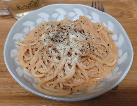 多くの方はご存じなので改めて問いかけるのは恐縮なんですが、黙っていたら話しが先に進まぬのでここは思い切ることにします。ワンパンってご存じですか? ぼくは2つとも知ってるぞ。一つ目がone + punchを略したもの、パンチ一発のことです。これは、ONE原作・村田雄介作画による『ワンパンマン』で知られてます。近頃のマンガの主人公は、平井大橋著『ダイヤモンドの功罪』や柳本光晴『響 小説家になる方法?』『龍と苺』などの天才型人物を主人公に据えることが多いと感じていますが、『ワンパンマン』の主人公(実際には彼は熾烈な修行を乗り越えているのですが、その描写は酷く簡潔です)もほとんどの敵をワンパンでやっつけてしまうのだ。二つ目はone + frypanを略したもの。フライパン1つのことですね。一般にはパスタ料理をフライパン1つで調理する手法のことを指します。通常、パスタ料理は1つの鍋で麺を茹でてもう1つの鍋などでソースを作るなど2つ以上の鍋(フライパン)を用いるのですが、ソース作りの過程で麺も一緒に加熱してしまおうというものです。でもこれってそんなに画期的なことなのかなあと常々思っています。というのが例えば即席めんはこれまた1つの鍋で麺を茹で、別の鍋でスープ用の湯を沸かし、フライパンなどで野菜炒めなどの具を用意するのがメーカーの推奨する調理法なはずです。でも実際にはぼくのみならず多くの方が鍋で麺と具を一緒に茹でてしまい、スープもその茹で汁に加えてしまうという手法を取られていると想像できるわけで、それがパスタに置き換わっただけなのだから、今更になってこの調理法をワンパンなどと呼ぶのもなんか妙な気分です。と言っておきながら、実際に自分でパスタをワンパンで作ったことはなかったのです。この作り方を本場のイタリア人たちが知ったらどう思うのだろう。と言ってみせたけれど、暗殺者のパスタはそのままワンパンで作るじゃんか。イタリア人は特に食については、保守的というけれどこのパスタはとても保守的な人の調理方法とは相容れぬと思うのだけどどうなのだろう。ちなみに冊目のワンパンもあるようです。それはパチスロ用語でone + punkの略語でパチスロでボーナスゲームを1回で終了することを意味するらしい。知らんかったなあ。当然にこのブログでは二つ目のワンパンを話題に上げるのだ。以下のサイトに二つ目のワンパンについては、詳述されています。JRE MALL Media 「【パスタの茹で方とレシピ】フライパンひとつで美味しいパスタの出来上がり|さまざまなレシピに使えるワンパンパスタにチャレンジ!」https://media.jreast.co.jp/articles/999 そこで以下の3つのワンパン調理のメリットが挙げられています。●洗い物が減る●1つのコンロだけでできる●簡単に美味しく仕上がる 上の2つは大したメリットじゃないかなあ。以前のいや即席めんをワンナベでやってた頃のぼくならとても大事なことだったかもしれないけれど、今ではそれほどにメリットには感じないかも。それより3つ目、「簡単に」は分からぬけれど、「美味しく」っていうのは実に重要であります。果たして本当に「美味しく」なるのだろうか。虚無トマトクリームパスタ(ワンパン)【材料】バリラ(1.4mm/茹でる) 100g/トマトケチャップ 大さじ2/水 280ml/牛乳 120ml/顆粒コンソメ 小さじ2/バター 20g/胡椒・グラナ・パダーノ 適宜【作り方】1. フライパンでトマトケチャップを弱火で炒める。水、顆粒コンソメを加える。パスタを加える。牛乳、バター、胡椒を加える。皿に盛って胡椒、グラナ・パダーノを散らす。 ワンパンパスタといえばリュウジ氏の十八番であります。数多くのレシピを発表しておられるから、これもリュウジ氏のものなのか確信は持てぬけれど、「虚無」と冠するレシピだからきっと間違いないだろうな。この安っぽい材料で「美味しく」なるのは麺から滲み出るセモリナ粉の成分が作用しているとしか思えないのだ。虚無チーズパスタ【材料】バリラ(1.6mm) 100g/水 280ml/顆粒コンソメ 小さじ1.3/牛乳 120ml/バター 10g/チーズ(ピザ用) 50g/胡椒・タバスコ 適宜【作り方】1. フライパンに水、顆粒コンソメを入れて沸かしパスタを茹でる。途中[茹で上がり2分前]牛乳を加える。バター、チーズを加える。胡椒を加えてタバスコを添える。 これまた質素な食材なのにどうしたものかとても「美味しい」のだ。さり気ないく添えられたタバスコの効果が利いています。プッタネスカ【材料】バリラ(1.6mm) 100g/オリーブ(緑) 適宜/ケーバー 10粒/アンチョビ 1切/トマトペースト 大さじ2/にんにく 1片/赤唐辛子 2本/マギーブイヨン 1個/水 50ml+100ml/油(オリーブ) 適宜【作り方】1. フライパンに油を熱してにんにく、赤唐辛子を炒める。アンチョビ、オリーブ、ケーパーを加える。トマトペースト、水を加えて煮詰める。取り出す。2. 水、ブイヨン、塩を加える。パスタを加えて煮る。1.を加える。皿に盛って胡椒を散らす。 大好きなブッタネスカに関しては、オーソド