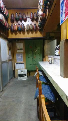 まったく下調べもせずに急遽六実に来ることになったので、路頭に迷うかというとそんなことは少しもなかったのでした。なぜなら、満員御礼の焼鳥店は駅前の寂しい目抜き通りを突き当たって、右に折れたところにあるのですが、そのすぐの路地の奥の方に赤提灯が棚引いているのを目撃していたのでした。砂利道の細い通りは近隣の方たちも多く―といっても同時に数名が行き来する程度であるけれど、この町では同時に人の姿を目にできる場所は限られているようです―暗いけれど、危なっかしくはないようです。その赤提灯の酒場は「大衆酒場 つる家」という渋いとしか言いようのない店名と安普請な構えで一気に気分が高揚します。店内に入ると当然のように客の姿はなく、最初店の方も見えなかったのですが、しばしのインターバルの後にかなりの高齢のばあちゃんが姿を現しました。むむむ、わざわざ好き好んでウィークデイに足を伸ばしただけの価値はあったというものです。天井には元はカラフルであっただろう黒ずんだ提灯が吊り下げられ、カウンターの向こうには座敷としても使われることがあったのだろうか、茶の間のような空間が見えています。この抜群の場末酒場感はなかなか味わえるものではありません。聞くとこちらはこの町の最古参の一軒で匹敵するのが「阿久利」というお店であるという情報を得ました。ぜひともお邪魔したいが行くに行けぬ理由がある。こちらの主たるお客さんは、都会で一杯呑んだ地元民が帰宅前に一杯立ち寄ったり、近隣の酒場が店を閉めてそのお客さんや店の仕舞いが済んだ店の方たちが多いようです。だから閉店時間もお客さん次第ということで、前夜は3時まで開いていたとのこと。でも早く閉めたら閉めたで結局寝床に着くのは明るくなってからになっちゃうのよ、ですって。だから遠慮なく遅くまで居座っても構わないようです。しかし、田舎町の酒場らしくお値段は見かけによらず強気なので、実はここで残金は約1,000円と心許ないことになってしまったのでありました。だから「阿久利」は諦めたんですね。ここはいずれ「鳥孝」とハシゴしに来ることとしよう。