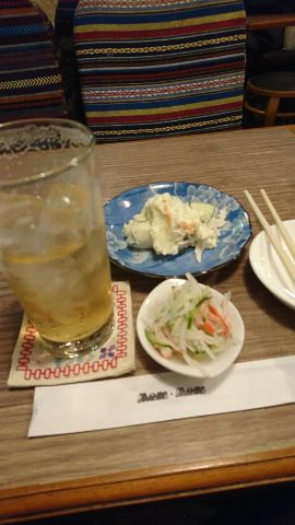 知らぬ店はないと豪語してみたけれど存在のみ知っているものの立ち入って見たことのない店は少なくないのでした。焼肉店なんかも唆る店構えであっても素通りしてしまうことがほとんどで、この「もんもん(monmon)」なるスナック風の店名を持つ酒場もどうも近寄りがたい気配を匂わさています。実際に入ってみるとスナックというよりは明らかに無愛想な喫茶店ぽくて、どうにも喫茶店で酒を呑むという行為に違和感を感じるぼくには、腰を下ろした椅子が座り悪く感じられるのです。酒はまあ手頃ではあるけれど食事処も兼ねているのか、盛りのごつい品が多いようです。単品にすると酒の肴にはちょっとお高い気がして、お通しのあるのをいい事にポテサラのみ頼んでみたけれど、これがいかにもちょっぴりで何か物悲しくなるのです。客は常連ばかりで、それも序列があったりするみたいでそんな所が地元に根付いていると見做せなくもないけれど、酒場に来てまで親分子分ごっこをするのは適わぬなあなんて思ってしまうのです。やがて、イジられてばかりのおぢさんを眺めているのがいたたまれなくなり、席を立ちますが、ここの店の夫婦はとても良い方だったので名誉のために補足しておきます。