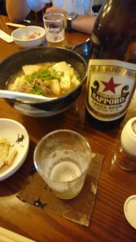 十条では「小料理 ほり」という上品ないかにもちゃんとした酒と肴を味あわせてくれるような酒場を訪れたようです。その後を追ってぼくもお邪魔したのだから吉田氏のことをとやかく言う資格などないのだろと思わぬでもないのでありますが、次に訪れた酒場での醜態を聞かされると、やはり少しは己の行動が店に与える影響について肝に銘じてもらいたいと思うのです。でもはからずもこの夜のハシゴを改めて並べてみる事で吉田氏の本質というかもっと単純には酒場の好みというのが白日の元に晒されたような気がするのです。端的に言うとこの人は庶民的な酒場よりはずっと銘酒居酒屋なんかのような洒落たお店が好きなんだなあという事です。こう書いているとぼくまで吉田氏が嫌いになりそうだから苦言はここまでにします。つまりは、吉田氏の好みはこの小料理屋を冠するようなちょいといい酒やいい肴を出す店なのです。それは無論好みだから否定するつもりなど少しもないし、ぼくも仮に彼の立場に置かれたら小遣い銭で呑むには少し厳しいなあと思うような酒場につい浮気してしまうかもしれません。ここはそうだなあ、中間管理職の上席の人が部下の若い女性社員などを引き連れて来るのに適当なお店に思えるのですね。実際に奥の卓席にはそうした面子が揃っているのです。吉田氏はそうした意味では随分とご出世なさってしまったということかもしれません。出世したら、ねえ、そりゃまあ少しはいい酒や肴を頼みたくなるのも無理のないことなのです。だから出世とは縁のないぼくと吉田氏とは志向する対象に大きな開きが生じているようだから、不満を感じても仕方ないことなのかもしれません。ところで、このお店、先程から書いているようにちょっとお値段はお高めであります。でもまあこうした店で刺身でも摘まぬというのもちょっとカッコ悪いと頼んでみるけれど、これはまあ普通に美味しいのです。むしろ、こちらでは煮物なんかを頼むのが良さそうです。盛りもいいし、味付けも上品というよりは家庭の味のようです。次にここにお邪魔するようなことがあれば、店のプレッシャーや自意識を撥ね退けて煮付を存分に味わいたいと思うのです。