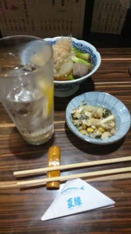 そういう分類からすれば「互縁」は、まぎれもなく後者に属するお店でしょう。実際に現地を歩いてみていただければお分かりになると思いますが、確かに呑み屋らしい風情はあるのですが、ちょっと一杯やっていこうかという気持ちにはまずさせられることのない類のお店なのです。それというのも入り口がまず客の行く手を阻んでいるように思えるのだ。そしてちょっとだけ料亭っぽいか前なのも緊張感を強いられるのです。店先にメニューが飾られているからこそなんとか入るきっかけを掴めたけれど、それがなければまずもって立ち入ることはなかっただろと思うのです。でもですよ、入ってみてびっくりなのです。コンパクトに造りこまれたコの字カウンターは少人数がじっくりと腰を据えて呑むのにこれ以上はないというほどの計算で組み立てられているかと思いたくなるのです。桟敷席のような奥の座敷もまた広すぎず狭すぎずでここでの宴席はかなり気が利いて、上司から一目置かれたりしてしまうんじゃないか。料理もこれでもかと定番に加えて珍味やら旬の幸も揃っていて、迷いに迷ってしまう。お通しのコーンなど種々の食材の煮物なんて、出鱈目なようでいながら複雑な味わいあ楽しくてこれだけお替りして食べ続けたくなるのです。なので、賑やかな野菜の炊き合わせを注文します。色んな野菜が食べられる機会は逃さないと思える年頃になりました。これが店側の事情もあるのでしょうが、煮しまった具材とこの日に仕込んだばかりであろう具材が一緒くたに味わえて、同じ筍でも全く違って感じられるというのは、かなりの荒業ではあるけれど、ぼくにとってはナイスなアイデアに思えました。独りすごいエバリンボの客がいて、目障りではありましたが、店のご夫婦も他の客も物静かでしっぽりと味わえるいい酒場でした。巣鴨にもまだまだ掘り出し物の酒場がありそうに思えますね。