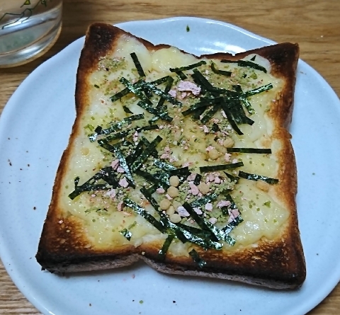 永谷園のホームページで見掛けた(と思います)お茶漬けの素のチーズトーストを作ってみました。