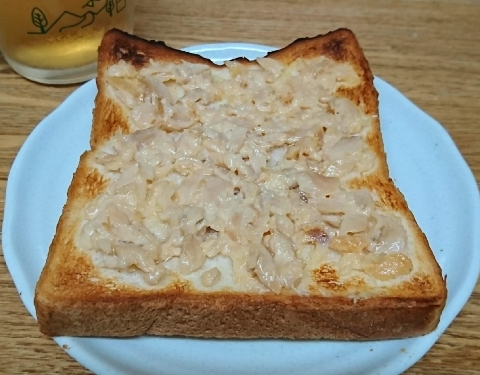 これまたちょっとしょっぱいなあ。いっそのことトーストにバターを塗って(バターの風味と会いそう)、その上にごはんを盛ってお茶漬けの素、チーズを散らして焼くってのはどうでしょうか。