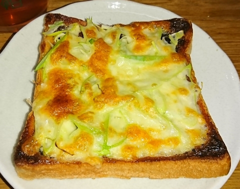 玉ねぎがあるなら、長ねぎもいけるだろうと、ねぎトーストを作ってみました。