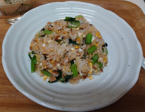 松茸の味お吸い物のチャーハンを作りました。中華風にラーメンスープを使う代わりに和風だしを使うレシピになります。