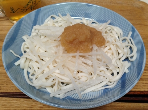こちらは千切り大根とおろし大根を組み合わせたレシピです。大根うどんという工夫のない料理名としました。