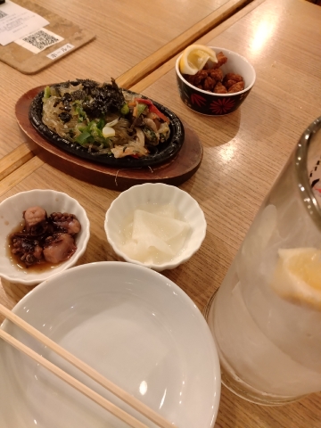とまあ人件費やらで仕方ないとは分かってるんだけどね。町屋にやって来ました。「チキン南蛮大衆酒場 あんじゅ 町屋店」にお邪魔しました。何となく店探しするのがかったるくて、珍しくA氏とO氏の3名だったから早く合流してゆっくり呑むのが良かろうと思い、駅近かつせんべろの方がお勧めしていたここに決めたのでした。先にA氏と店に入ってO氏を待つことにします。店がイマイチのようならO氏が到着すると連絡が入った時点で店を移ろうという算段であります。入り口付近の席は埋まっていたので繁盛してるかと思ったのですが、奥の広いスペースはかなり空席が目立ちました。席に着くや韓国の方らしき女性が注文はこちらでとモバイルオーダーを進めてきます。側を通ったら口頭でもいいというのでまずは酒を口頭で注文しました。首尾よくメガジョッキが注文できました。こちらはオーダーこそモバイルですが、幸いにも簡易的なものではありますが、紙のメニューもあるのです。でその紙の方を眺めていたらモバイルの方が今日のお勧めなんかも見れて便利ですよと、やはりモバイル押しのようです。でもまあ待合せのつもりだからそれほどには料理に拘るつもりはないのです。って想定より早くO氏の到着の報が入りました。ならまあここでもう少しだけ呑むことにするかと酒を追加しようとすると、今度の店員はモバイルで注文してくれとのこと。ここに至っていちいち指摘されるのも面倒になってきたので観念してモバイルオーダーを受け入れてしまったのでした。結局のところ、ここでの呑みは何を呑んだか食べたかよりも、注文方法を巡る店の方との静かな応酬に終始してしまった感じがあります。こういう徒労感も解決すべき課題であると思うのですがいかがでしょうか。