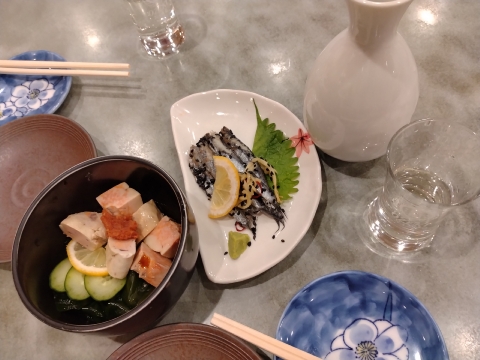 町屋では随分多くの酒場を巡ってきましたが、暗い町並を歩いていては見過ごしてしまうけれど、実は大いに繁盛する酒場が少なからず存在するのです。「ときわ食堂 サンポップ店」もそんな一軒。町屋で「ときわ食堂」となると定評のある一軒がありますが、ぼくは駅直結の地下のこちらが好みです。地下だから町に立っていて目に留まらないのはまあ当たり前のことですが、こちらはいつだって多くのお客さんで賑わっている印象があります。単に駅から近いのが理由なのかどうかは判然としませんが、一方が改装されてすっかりかつての風情を失ってしまったのに対して、こちらは風格もないし、老舗感も稀薄だけれど、何より広々としていて少しも窮屈じゃない雰囲気が魅力なのです。それでも難がないって訳じゃないのです。肴は珍味系も豊富で少しも文句はないのだけれど、逆に酒はというと結構お高めの設定となっています。大衆的に思える町中華だったり大衆そば屋なんかがお高めなのと似たような感じです。人数が揃えば焼酎のボトルを入れちゃえばいいんでしょうけど、そうしてまで腰を据えて呑むには、われわえはまだまだ好奇心が勝るのだ。つまり一軒でボトル1本呑み切るだけの時間は費やしたくないのです。また、ここがすでに三軒目ということもあります。と書きましたが、品書きを見ればボトルを頼むまでもないことが分かるはずです。ビールやサワー類は高いけれど日本酒ならお手頃価格が維持されているのです。だからここではひたすらに空の銚子を増やすことになるのです。正直なところ、自宅で呑む日本酒が刻一刻とレベルをアップさせているのに対して、普通酒のグレードは相変わらずのものと思われ、それでも呑み始めるとクイクイ呑み進めることができてしまうものだからついつい必要以上に呑み過ぎてしまうのです。アルコール度数の低めのビールや高めのウイスキーなんかよりその間の日本酒やらワインなんてのが最も呑み過ぎてしまう気がするのは翌朝の辛さからも明らかでしょう。でも駅の改札も間近なものだからついつい店の仕舞いの時間までダラダラと吞んでしまうのであって、要注意なのです。そういえばさっきまで混雑していたお店が気付けば店の人ばかりになっているのです。
