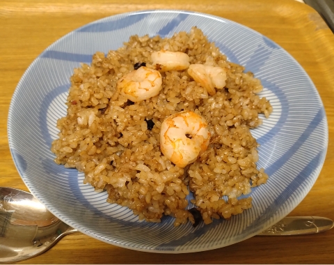 1. フライパンに油を熱してにんにく、生姜、赤唐辛子を炒める。エビを加える。カピを加える。ごはん、パームシュガー、ナンプラーを加える。器に盛ってピーナッツを散らし、レモンを添える。