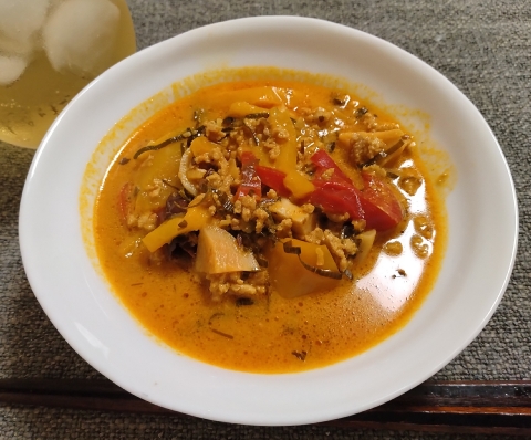 おっ、これは美味しいなあ。かなり複雑な味です。レモングラスまで入ってるしね。色んな国のカレーを作っているともうどのスパイスを使うのか、分量はどうなのかって本当にそこまで重要なのかしらって思えてくるのです。