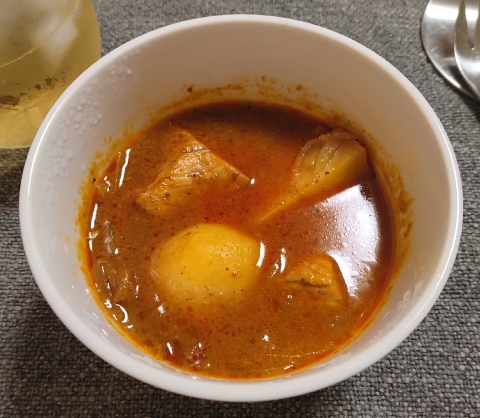 おっ、これまたすごい美味しいなあ。以前ベイリーフを買った(ローリエとの違いを確認するため)のですが、なかなか出番がなくてここで使えたのは嬉しいなあ、って本当にスリランカでベイリーフを使ってるのかね。そんなに複雑な材料じゃないのにどこのカレーとも違った味に仕上がったのは楽しいなあ。