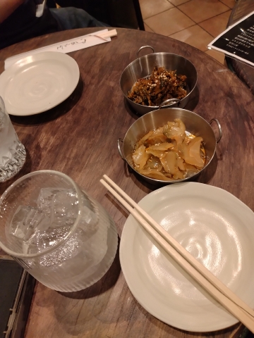 さて、「立ち飲み のんべぇ」にやって来ました。いかにも日本人の呑兵衛を立ち止まらせるような店名ですが、実際に店の雰囲気を眺めると、店名を裏切っているとしか思えぬような、ちょっとすかしたバーのような構えのお店です。しっかり椅子も置かれていますしね。お客さんも訳アリ風のアベックのみだったのでスルーしたいところでしたが、生憎、いわゆるゲリラ豪雨に見舞われたので緊急避難的に店に飛び込んだのでした。雨宿りのつもりでしかないので、なるべくなら散財することなく早々に引き揚げたいところですが、これだけ空いているとその見極めがなかなか難しいのです。しかも韓国人らしき店の若い方はアベックと喋り込んでいてなかなか割り込みずらいのでした。まあ、実際には嫌な気分にさせられることもなく、非常にあっさりとした客あしらいをしてくれて少しも気をもむ必要はなかったのでした。さて、おつまみは韓国風のメニューが並んでいますが、単に皿に盛り付けるだけで調理はほとんど不要な品ばかりでした。一般にイメージするような立ち飲み屋とは異業種のカウンターバーのようなスタイルと思うのがよろしいようです。それならいっそのこと、そっちよりの店名にした方がよっぽど集客には向いているように思えるし、韓国人の若い人がやってるってことをPRした方が韓流マニアたちにとっても分かり易いと思うのだけれど、そうもいかないってことなのかねえ。