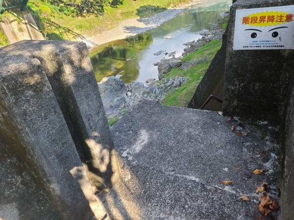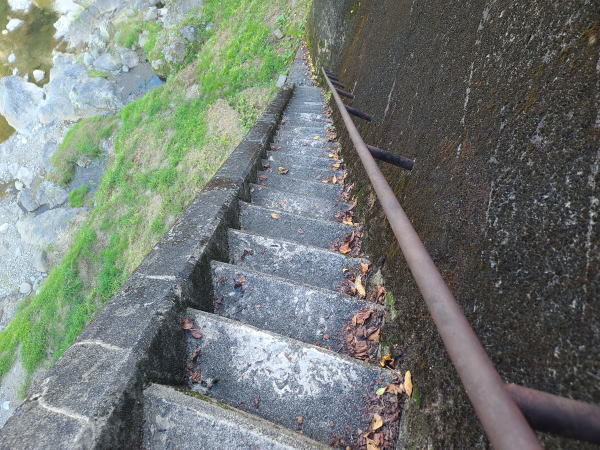 鮎釣りの人が使うみたいだけど、本当に急な階段でした。