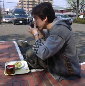 厚木市文化会館で行われた、竹善さんのツアーの初日でした。会場へは都内から車で行ったんですが、会場付近から東名厚木出口にいたる、大工事渋滞で、まさかの大遅刻!!!! 僕より遅く会場入りしたのが、ピアノの塩谷君と竹善さんだけという、異常事態でしたが、なんとか定刻でコンサートを始めることができました。本番はもちろん、大いに盛り上がりました!!!! 今回演る楽曲は、僕的にはかなり体力のいる(つまり盛り上がる)ものが多いんですが、同時に、針の穴に糸を通すような繊細さも必要だったりして、ミュージシャンのいろんな資質を試されている感じ。全ては竹善さんの手のひらの上で、あらかじめシミュレーションされているこのなのでしょうけど・・とにかく、努力したくなる、いい現場だと思います!!!!!さて、下の写真は、前日のゲネプロでのひとコマ。楽屋に、即席カフェテリアみたいなのができていて、食べ物をふるまってもらっていたんですが、あまりの天気の良さに、ピアノの塩谷君が、「こんなに天気がいいんだから、僕は外で食べる」って言って、トレイごと会場の外に持ち出して、食べ始めたんです。まさにアーティスティック!!!!いつもいろんなことに手を出してしまう僕とは正反対に、塩谷君はピアノ一筋。塩谷君のピアノは大好きだし、ひとたび塩谷君がピアノを弾き始めれば、僕の耳は釘付けです。ところで、「真実を写す」、と書いて写真っていいますが、僕は必ずしも写真は真実を写さないって思ってます。なぜなら、あんなにアーティスティックで、かっこよく思えた塩谷君なのに、写真に撮ってみたら、普通に味噌汁を飲むおっさんなんですよ!!!!というわけで、僕は、僕が見たままに近い塩谷君をフォトショで加工してがんばって作ってみました。まあ、味噌汁飲んでることには違いないんですけどね・・・