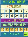 当て太郎は、全滅、バトラー結晶削除は、削除数字 42 OP 06,07,13,14,33,38で、ボーナス数字を当選数字とした場合は、×ですね(; ̄ー ̄A