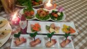 お料理教室に行ってきました今日教えていただいたのは・・・ サーモンのムース チーズソースがけ トマト アラ エッグ カリフラワーの冷製スープ イチゴのクリームチーズタルト 先生の手作りパンや紅茶も一緒にいただきました いつも家でも作れそうなものばかり教えてもらえてやる気になります毎回勉強になるし、好きなことは話を聞いていてもデモンストレーションを見ていても興味深々でとっても楽しいです