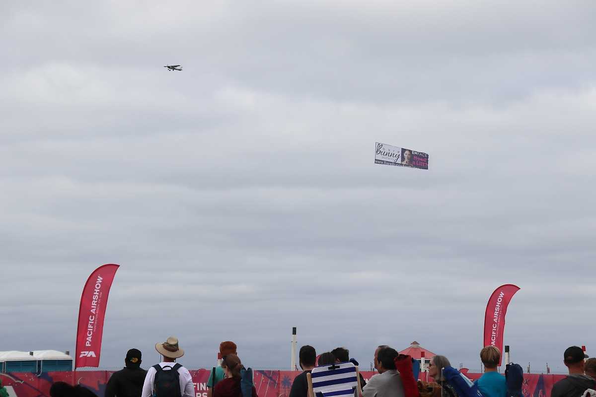 セスナ機がCMを引っ張ってました。基地内で開催されるショーでは当然見る機会が無いし、リゾートチックな気分にさせてくれます。