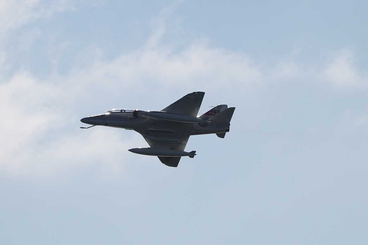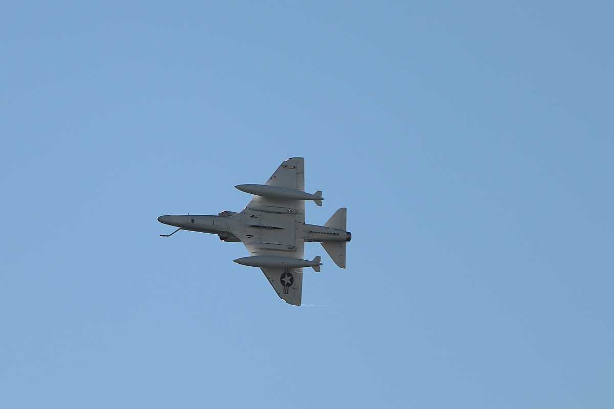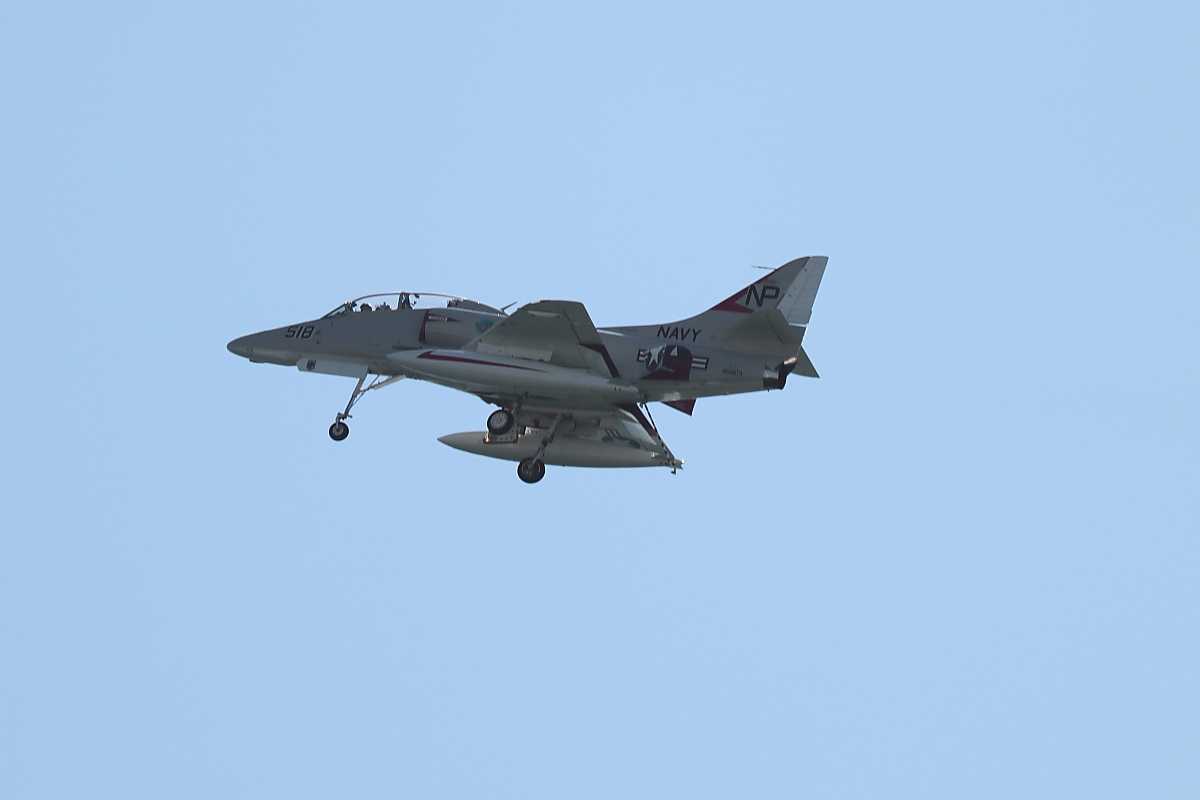 正式な型式はダグラス・TA-4Jスカイホークとのこと。1972年製の機体で1983年に墜落し大破した経緯があり、その後、2010年4月にレストア完了と共に現在の機番N518TAが付与されたとのこと。