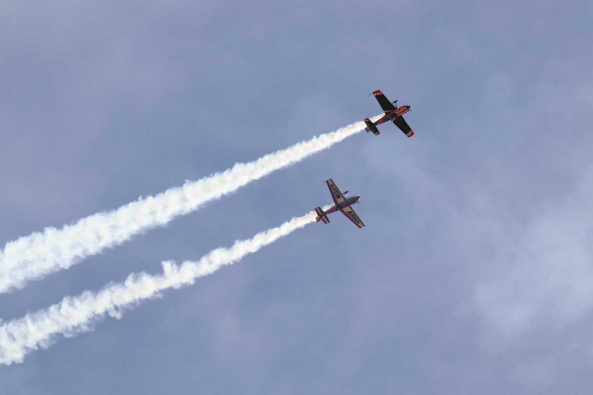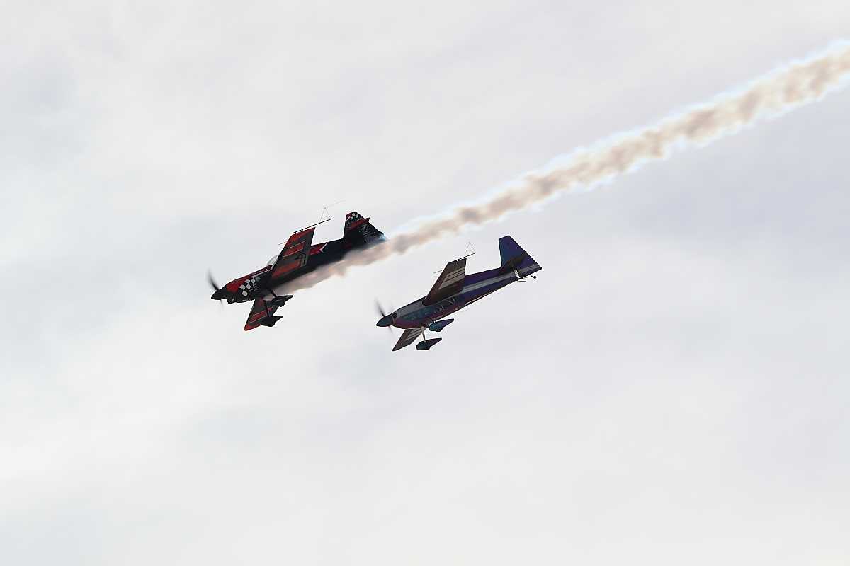 ロブ・ホーランドさんのMXS-RH(赤黒の機体)とビル・スタインさんのEDGE540のペア。前者の機体はすべてカーボン製とのこと。